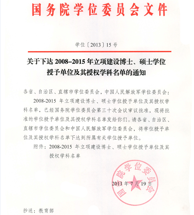 2013年7月19日,国务院学位委员会发文,yabo鸭脖官网被增列为博士学位授予单位。