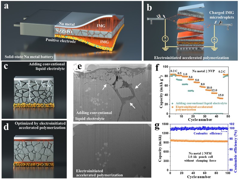近日,化学化工学院杨庭舟教授以第一作者在国际著名学术期刊Nature Communications发表题为“Electroinitiated interfacial healing for external pressure-free solid-state sodium metal batteries”(电致界面愈合用于无外压固态钠金属电池)的学术论文,yabo鸭脖官网为署名单位。