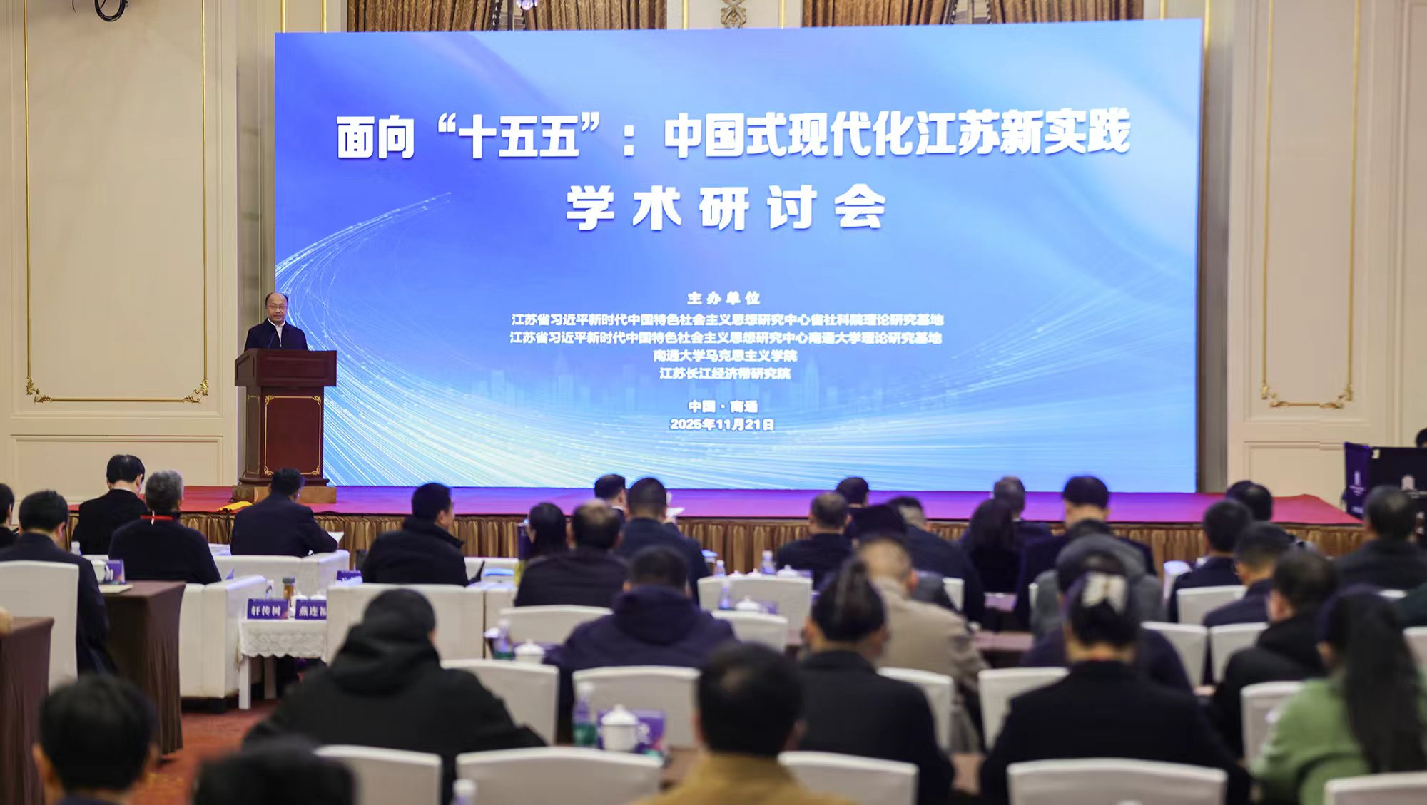 11月21日,“面向‘十五五’:中国式现代化江苏新实践”学术研讨会在鸭脖举行。研讨会由江苏省习近平新时代中国特色社会主义思想研究中心江苏省社科院理论研究基地、yabo鸭脖官网理论研究基地,以及鸭脖马克思主义学院、江苏长江经济带研究院联合举办。来自省内外多家高校、科研院所的专家学者围绕中国式现代化江苏新实践展开研讨,为谱写“强富美高”新江苏现代化建设新篇章凝聚思想共识与实践合力。
