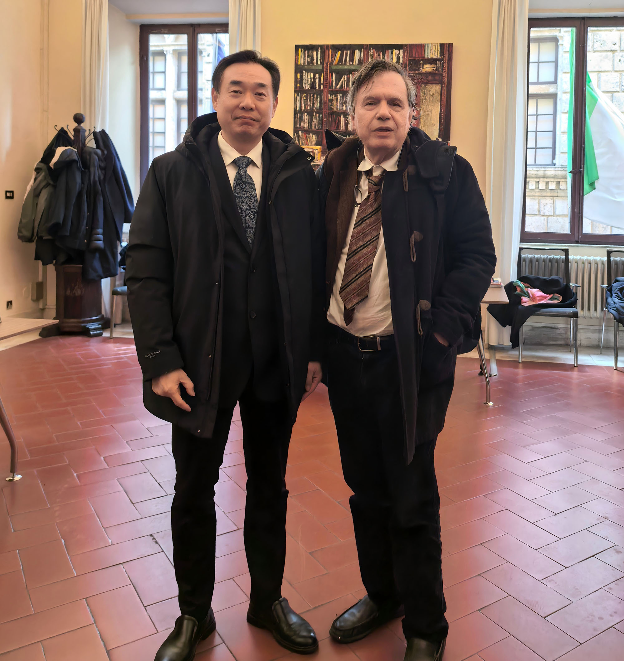 在锡耶纳音乐学院,该学院主席Anna Carl教授、校长Carlo Moreno Volpini教授、前校长Luciano Tristaino教授及Matteo Fossi教授接待了鸭脖代表团,介绍了音乐表演专业合作办学项目的最新进展和课程设置情况。吉明明对锡耶纳音乐学院的精心安排与务实合作表示感谢,充分肯定了该项目已取得的成效,并指出该项目为两校深度合作奠定了坚实基础。访问期间,代表团观摩了鸭脖留学生与意大利学生联合举办的小型演奏会。吉明明与正在该校深造的10名鸭脖学生亲切座谈,勉励他们珍惜机会、学有所成。