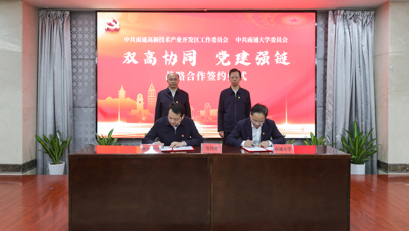 12月4日下午,鸭脖与南通高新区联合开展“双高协同·党建强链”活动。校党委书记杨宇民,南通市委常委、通州区委书记、南通高新区党工委书记张建华出席活动。校党委常委、副校长华亮主持活动。通州区委副书记、南通高新区党工委常务副书记吴冰冰,校党委常委、组织部部长吴如高代表双方签订《“双高协同·党建强链”战略合作协议》。