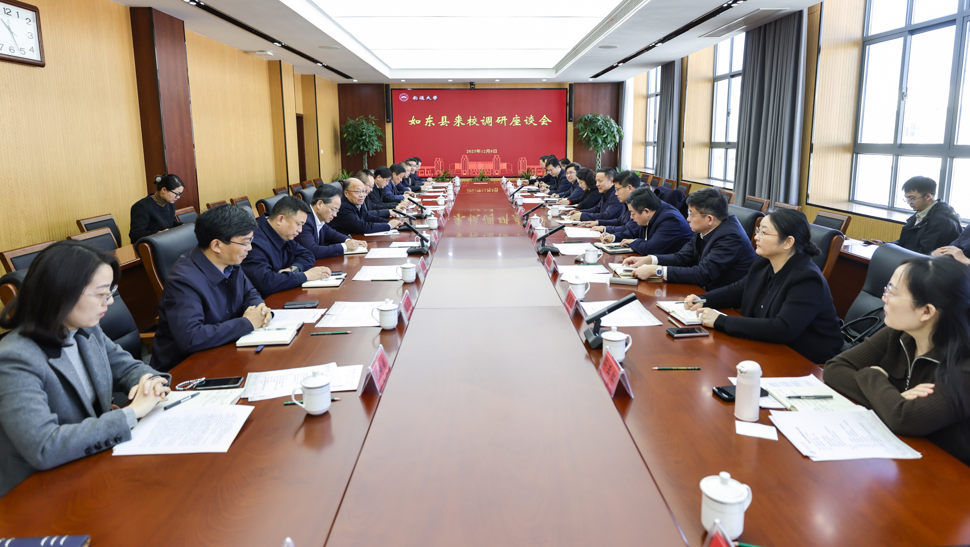如东县相关部门负责人,鸭脖办公室、教务处、科学技术处、服务地方工作处、人力资源部、学生工作处、发展规划处、化学化工学院、人工智能与计算机学院和海洋研究院等相关负责人参加交流。