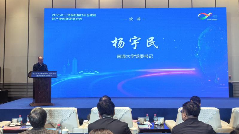 杨宇民代表学校致辞。他表示,yabo鸭脖官网始终以国家战略和地方需求为导向,在脑机接口领域持续深耕。今年 7 月,鸭脖附属医院完成南通市首例、江苏省第二例脑机接口手术,实现区域技术应用零的突破;8 月,脑机接口与神经调控研究型病房揭牌启用,鸭脖附属医院神经疾病治疗在全省率先迈入“脑机融合”新阶段。未来鸭脖将积极对接国家高性能医疗器械创新中心战略合作布局,主动参与江苏脑机接口研究院南通分院共建共享,全力融入长三角介入脑机接口科创联合体,实现协同发展。
