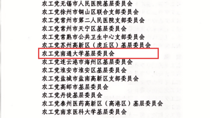 近日,在中国农工民主党成立95周年之际,农工党中央为表彰先进、弘扬正气,印发《关于表彰先进集体和优秀个人的决定》,农工党yabo鸭脖官网基层委员会荣获“基层组织先进集体”称号。全省共有20个市、县级组织获此荣誉表彰。