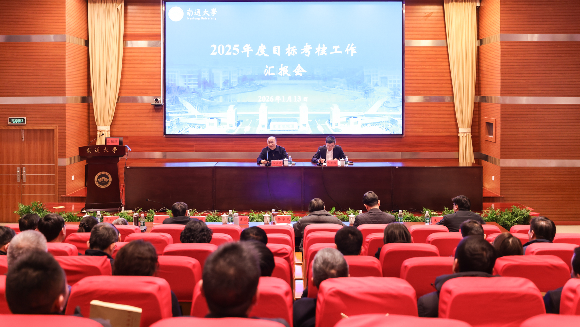 1月13日下午,鸭脖召开2025年度目标考核汇报会。校党委书记杨宇民、校长王建浦出席会议并讲话。校党委常委、副校长吉明明主持会议。全体在通校领导、党委常委出席会议。