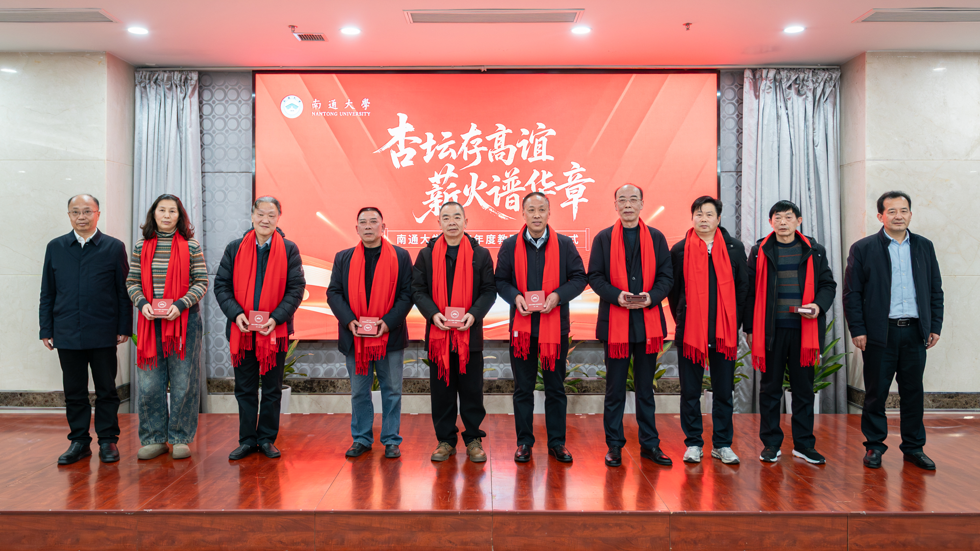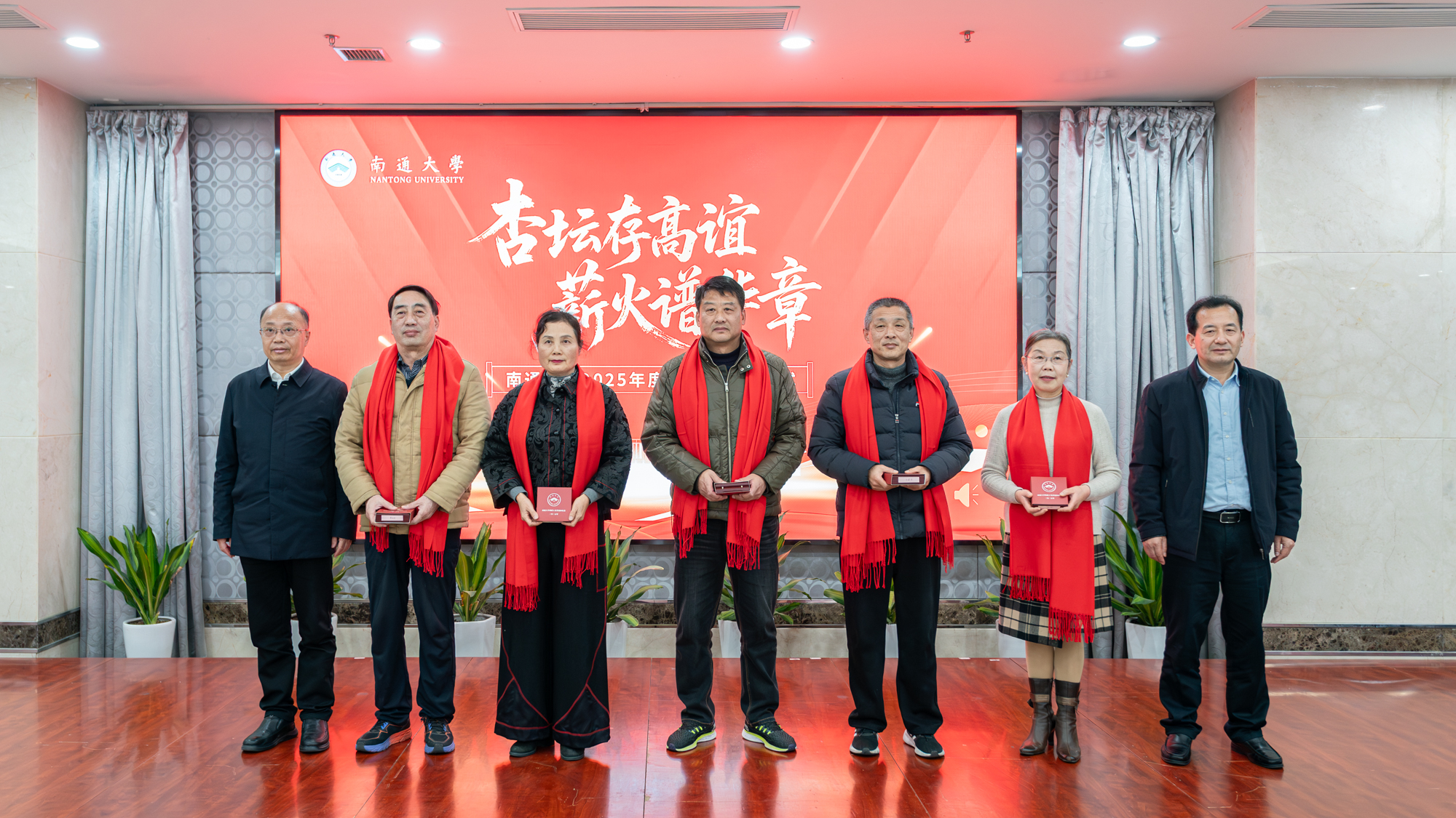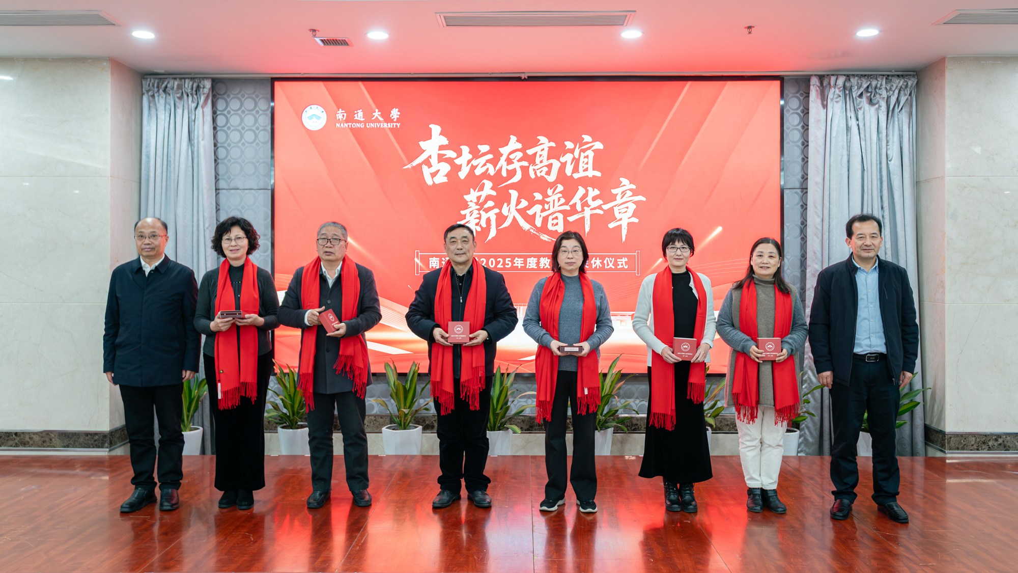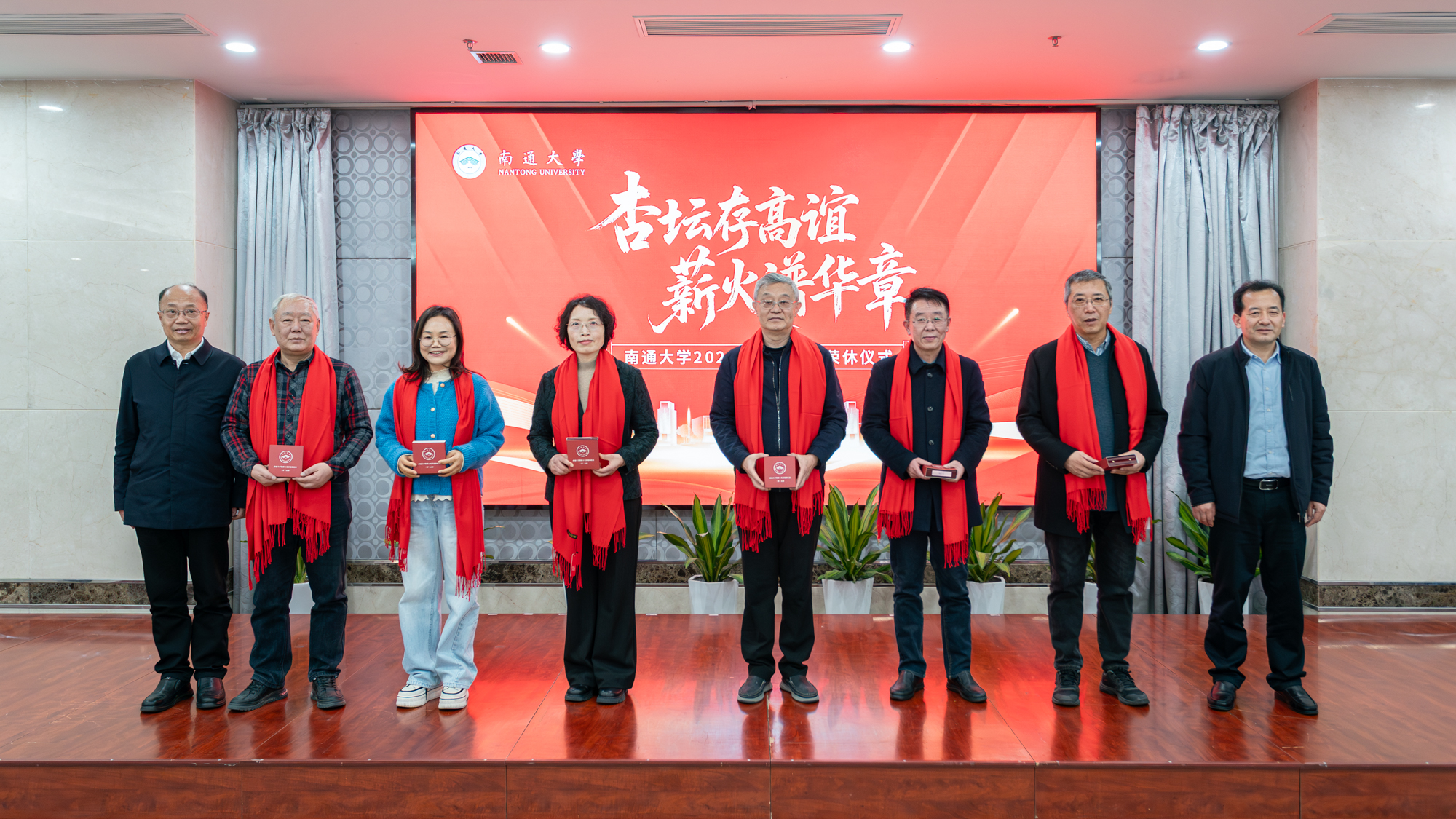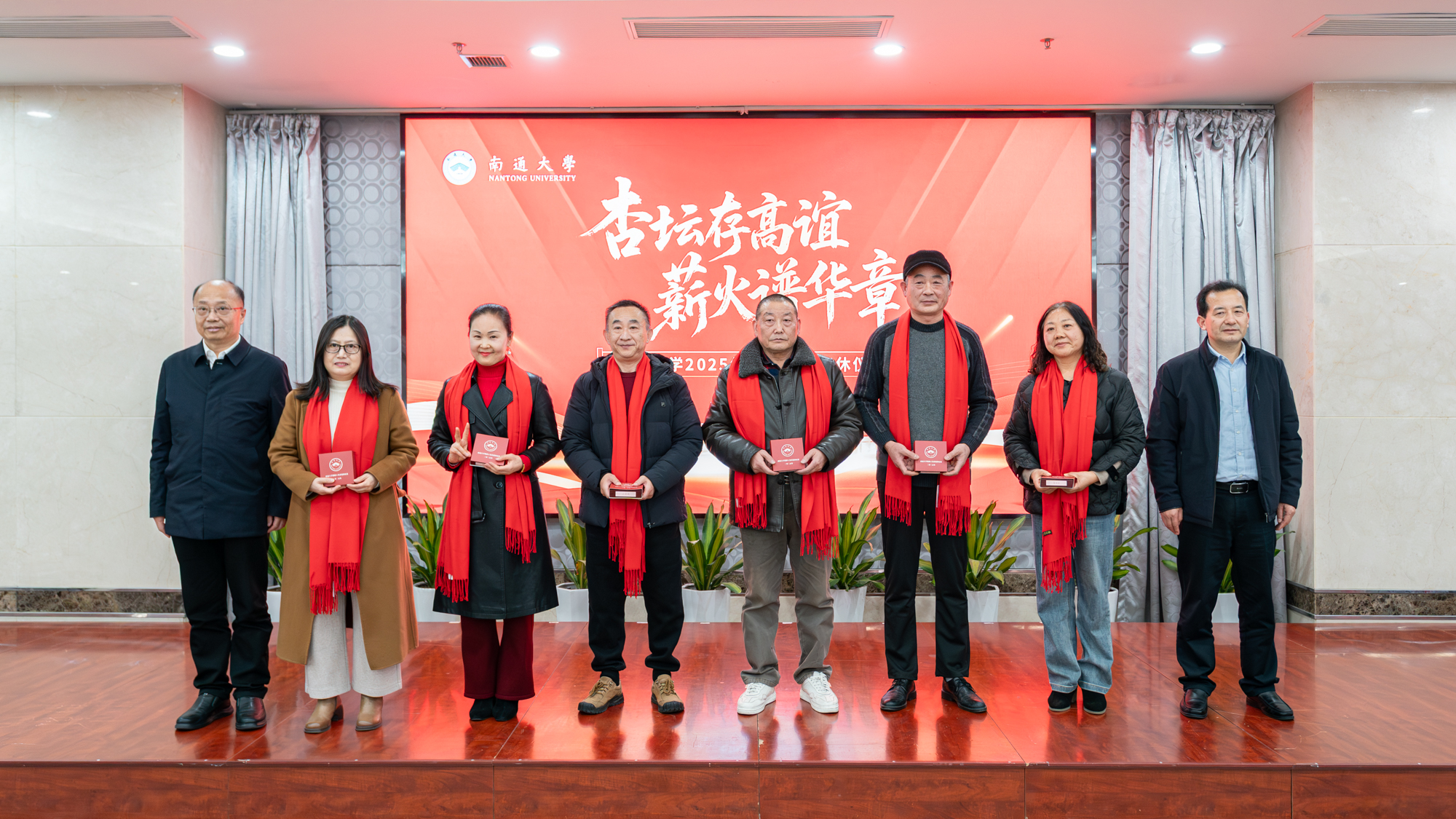 杨宇民代表学校党政向2025年度光荣退休的65位教职工致以诚挚感谢和崇高敬意。他指出,荣休教职工数十年来坚守育人一线,将最宝贵的年华奉献给通大事业,其中17位老师工龄超过四十年,生动践行了“为党育人、为国育才”的初心使命,深刻诠释了“祈通中西、力求精进”的校训精神和“道德优美、学术纯粹”的价值追求。他表示,学校每年举办荣休仪式,不仅是对教职工贡献的肯定与褒奖,更是对育人精神的颂扬与传承,旨在营造尊师重教、薪火相传的良好氛围,激励广大教职工接续奋斗、砥砺前行。杨宇民指出,当前学校正处在加快建设特色鲜明国内一流大学的关键阶段,希望荣休教职工弘扬“五老”精神,做到“离岗不离心、退休不褪色”,继续在人才培养、学科建设、青年教师传帮带等方面贡献智慧和力量。他寄语全体教职工要主动学习老同志的敬业精神与崇高情怀,大力弘扬教育家精神,在各自岗位上担当实干、奋发有为,共同谱写学校事业发展新篇章。