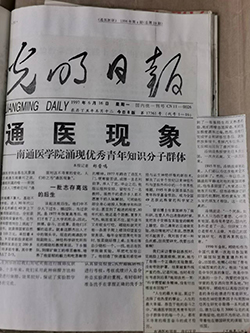 1997年3月20日、21日、22日,《南通日报》连续刊发三篇南通医学院优秀青年知识分子群体系列报道,产生强烈反响。其后,新华社、《人民日报》、《光明日报》等多家央媒纷纷关注这一群体,在那个年代,“通医现象”被作为一种时代精神,为全国人民所学习。
