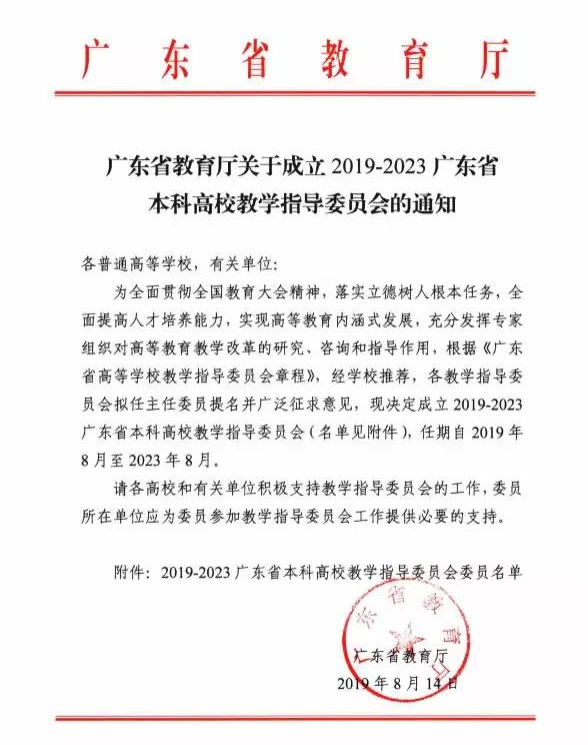 近日,广东省教育厅发布了关于成立2019-2023广东省本科高校教学指导委员会的通知。必赢官网林丹明教授当选为广东省本科高校工商管理类专业教学指导委员会副主任委员,徐宗玲教授当选为广东省本科高校经济学类专业教学指导委员会副主任委员,郑慕强教授当选为广东省本科高校经济与贸易类专业教学指导委员会委员。